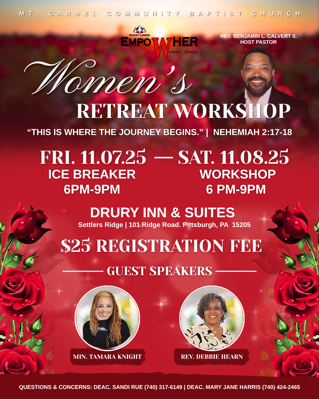 ❤️ The EmpowHER Women’s Ministry of Mt Carmel invites ALL WOMEN to share with us in our Annual Women’s Retreat Workshop.